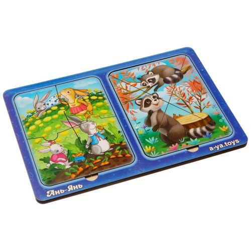 Пазли — вкладки добре розвивають дрібну моторику рук, логічне мислення та візуальне сприйняття дитини. Головна мета — підібрати відповідні елементи за формою та розмістити на рамці-основі, щоб вийшла готова картинка. У рамці розміщені 2 картинки по 4 елементи. Розмір основи 23х16 см._