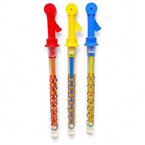 Мильні бульбашки, чудовий варіант для веселих прогулянок і розваг! Завдяки своїм розмірам вийде дути найбільші бульбашки, а велика кількість шпаків збільшать результат! Є різні кольори. Об'єм розчину — 120 мл. Розмір пляшечки — 36 см, виготовлена з пластику. Рекомендовано для дітей від 4 років.