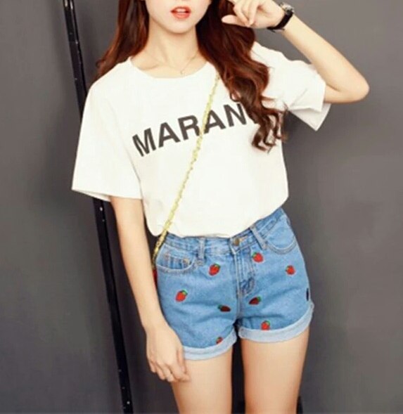 Щільний джинс із яскравою літньою вишивкою, апетитні полунички додають позитивного настрою